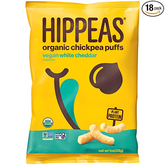 • Healthy Puff Snack With Crunch: Hippeas Vegan Snacks are packed with 4g of Plant Protein and 3g of Fiber per 1oz serving. They’re USDA Organic, Certified Gluten-Free, Kosher, Non-GMO, with No Peanuts, Tree Nuts. Better healthy snacking for all.